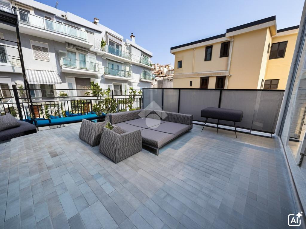 Scalea, via dello Stadio angolo con via Lauro, in piccolo stabile dotato di ascensore, 1° piano di 110 mq, circa 50 mq di esterni. Attualmente è composto da ingresso, cucina con uscita sul terrazzo, 3 camere, bagno e ripostiglio, ma anche le divisioni interne possono essere personalizzate. Ampia balconata angolare con affaccio su strada. Attualmente rustico ma verrà consegnato completamente rifinito, con possibilità di scelta dei materiali. Esterno in fase di rinnovamento. Possibilità di acquisto di un box auto nel piano seminterrato, serivto anch'esso da ascensore. L'acquisto avviene da privato, quindi non soggetto ad iva e idoneo alla legge che prevede il pagamento delle imposte d'acquisto determinate solo sul valore catastale, con notevole risparmio sui costi dell'atto notarile