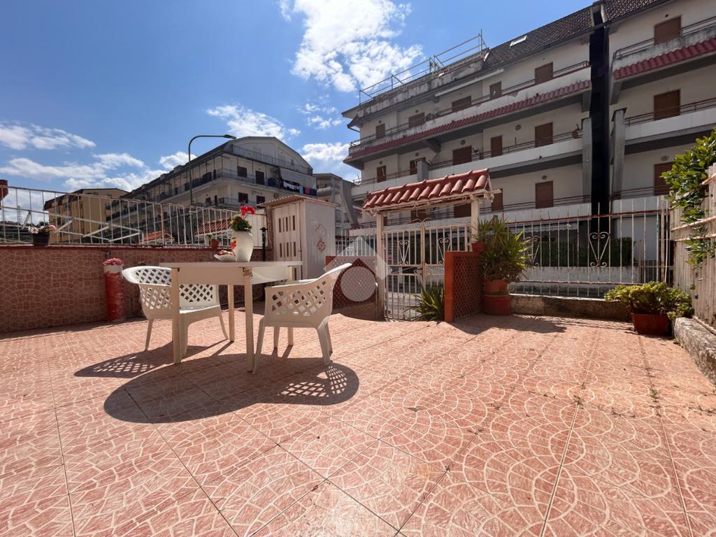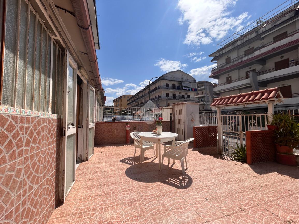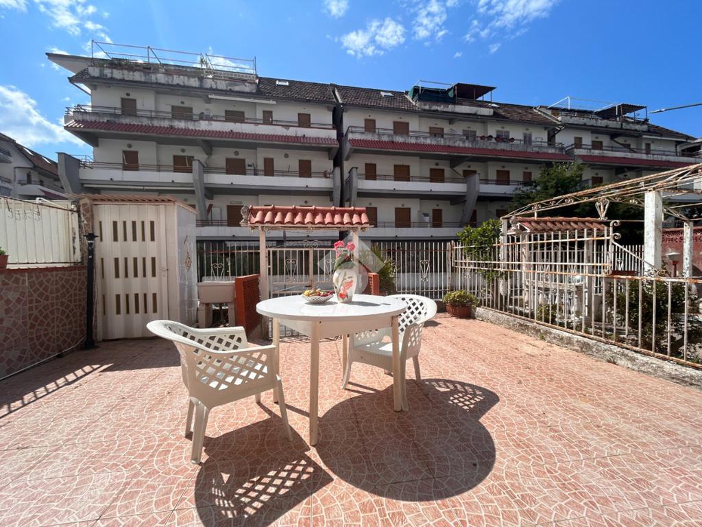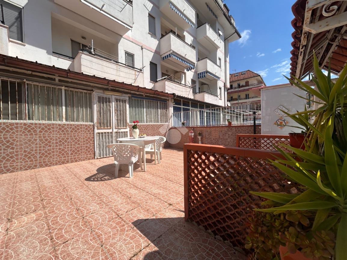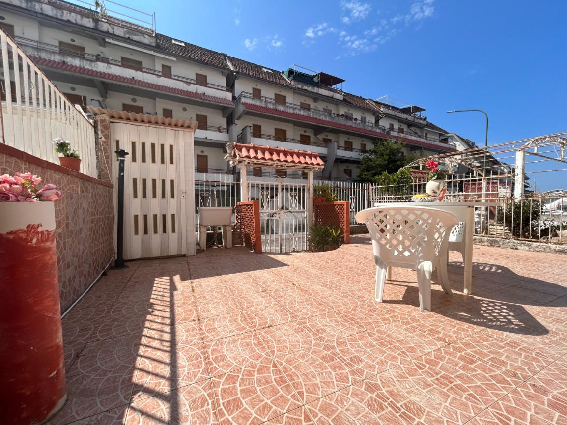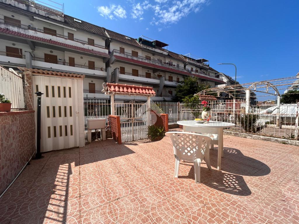Scalea, via Pitagora, in zona servita, bilocale con ingresso indipendente e giardino di proprietà di circa 34 mq attrezzato con doccia. L'immobile si compone di cucina verandata, soggiorno, disimpegno, camera matrimoniale, bagno con doccia e finestra. Arredato. A circa 700 metri dal mare. Spese condominiali ordinarie pari a circa Euro 280 annui.