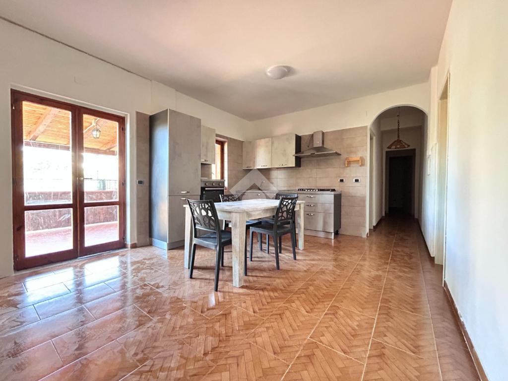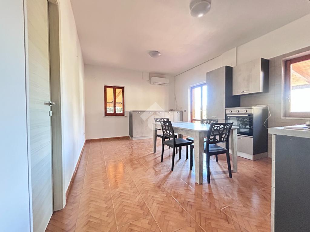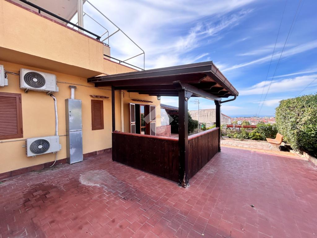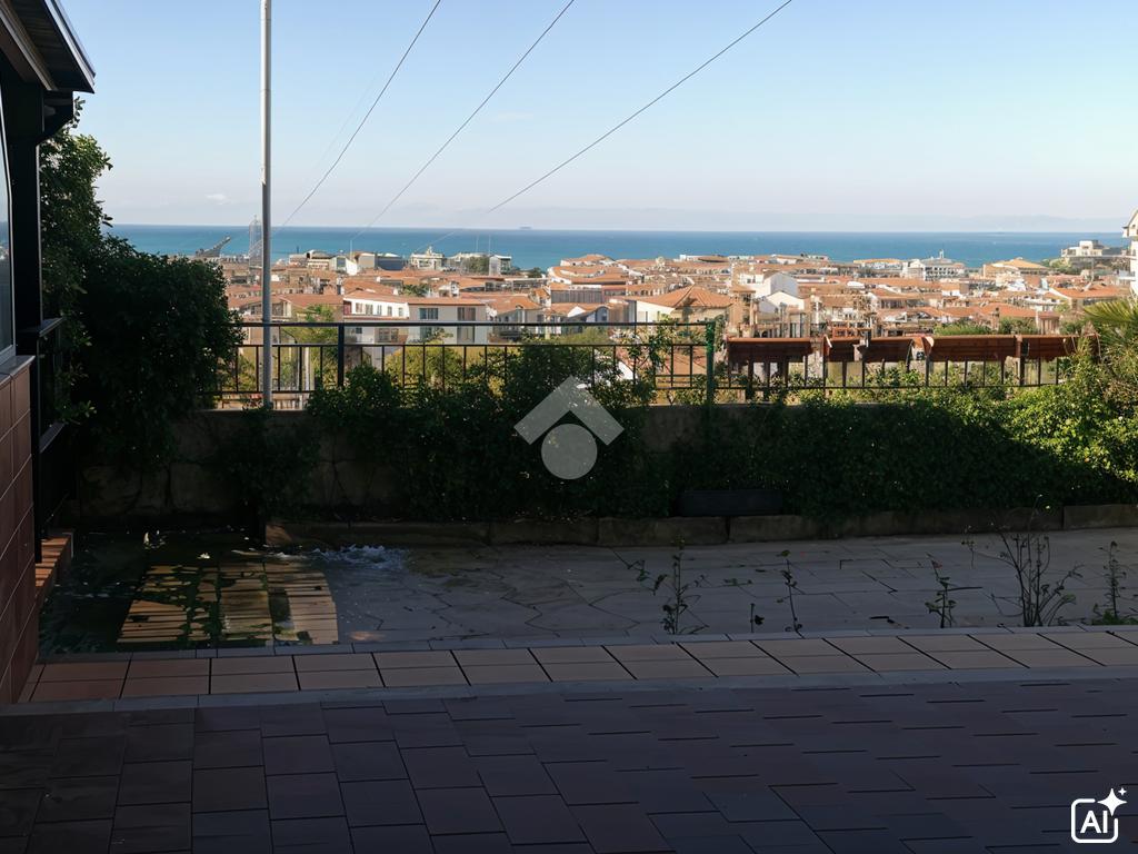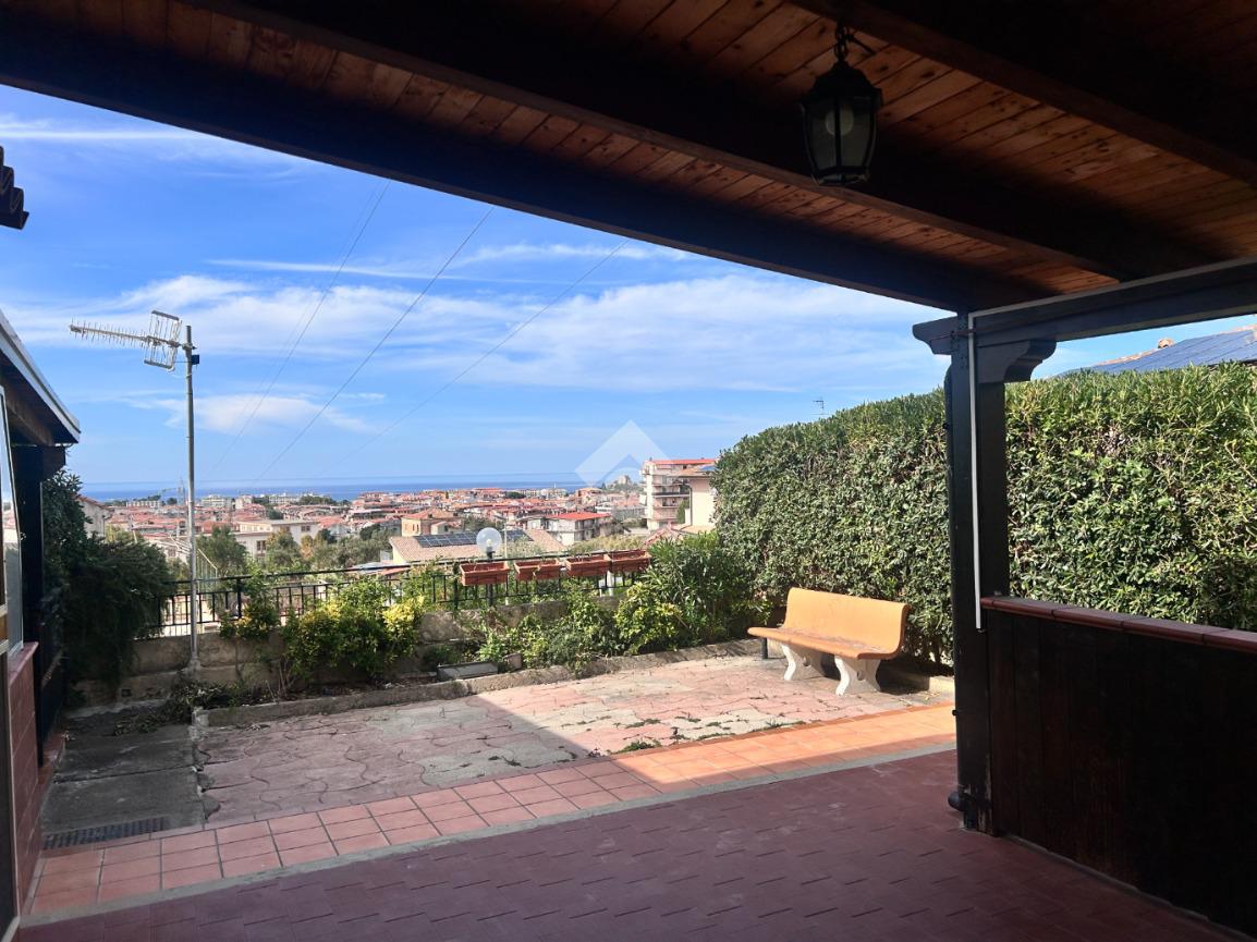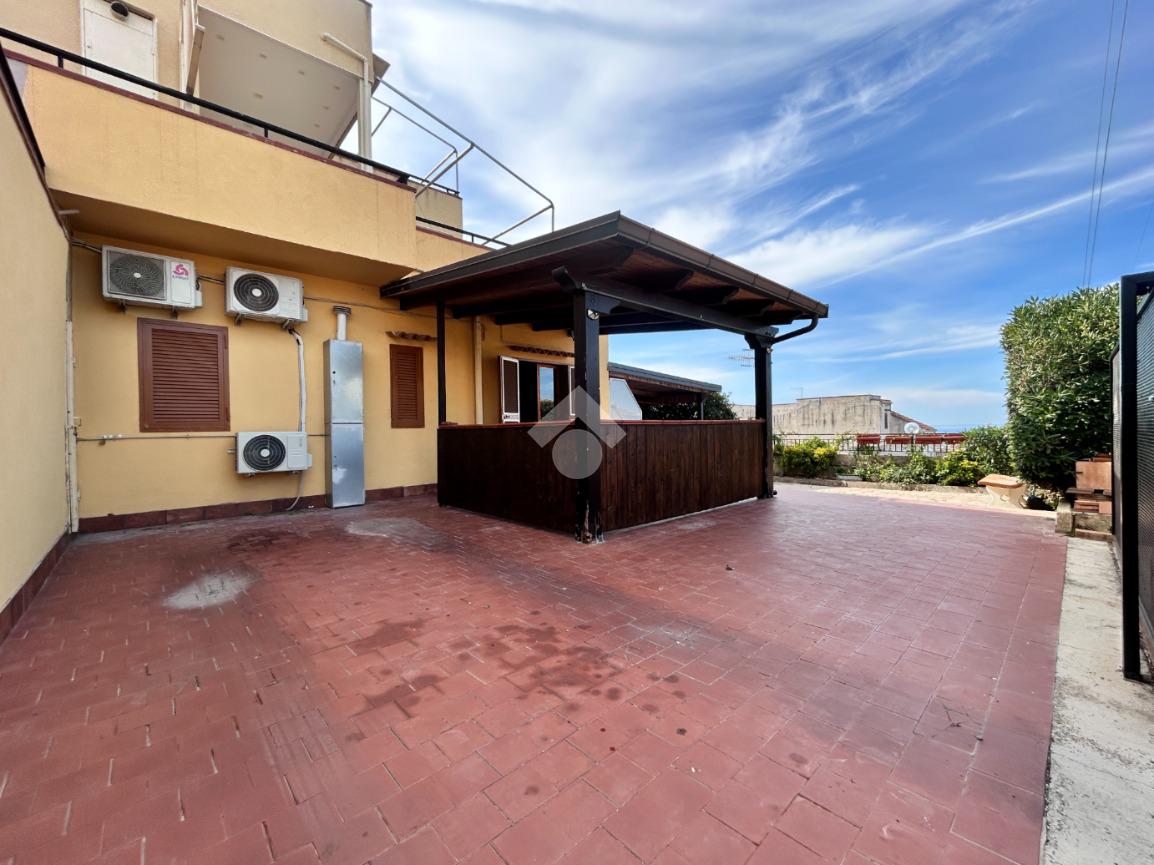 Scalea, via Sandro Pertini, appartamento al piano terra, di 86 mq interni, con ingresso indipendente composto da: corte angolare di 80 mq di proprietà esclusiva, attrezzata con doccia esterna e lavabo, con possibilità di parcheggiare l'auto all'interno; sala con angolo cottura, 3 camere e 2 bagni. Impianto GPL per l'acqua calda. Impianto elettrico nuovo. Climatizzato. Posto auto assegnato. A circa 2 km dal mare.
