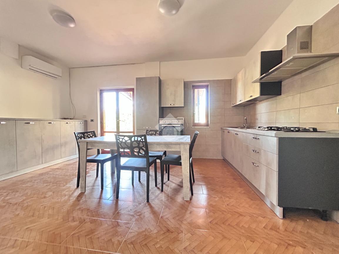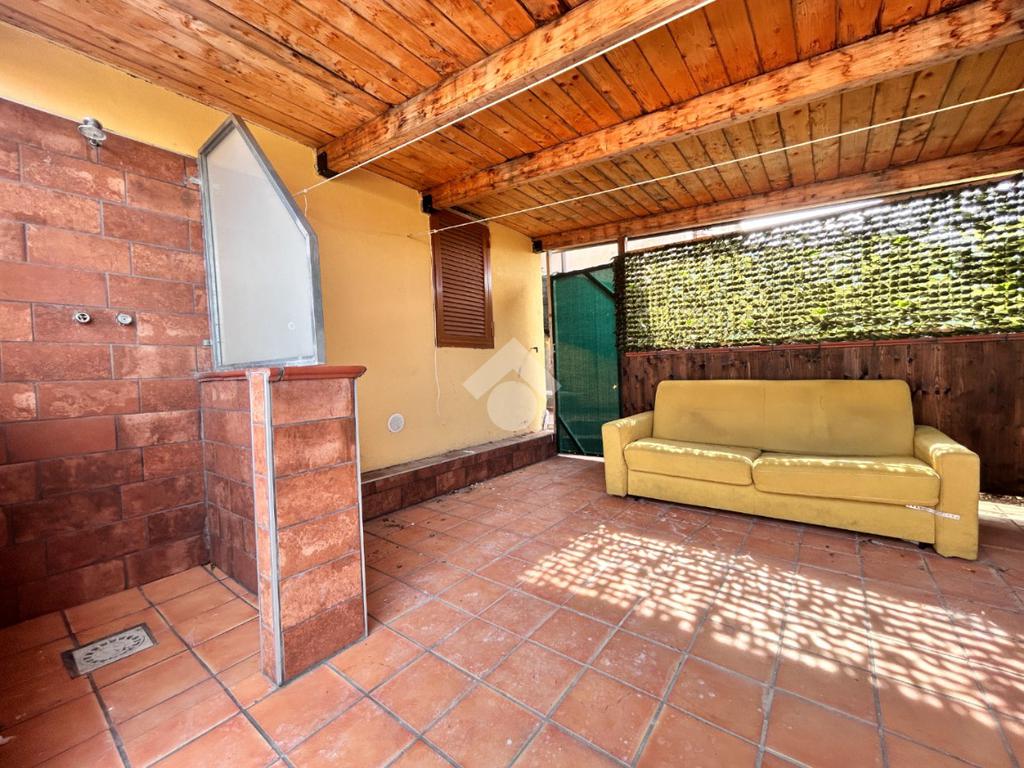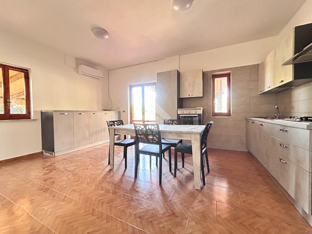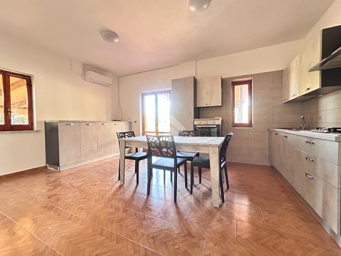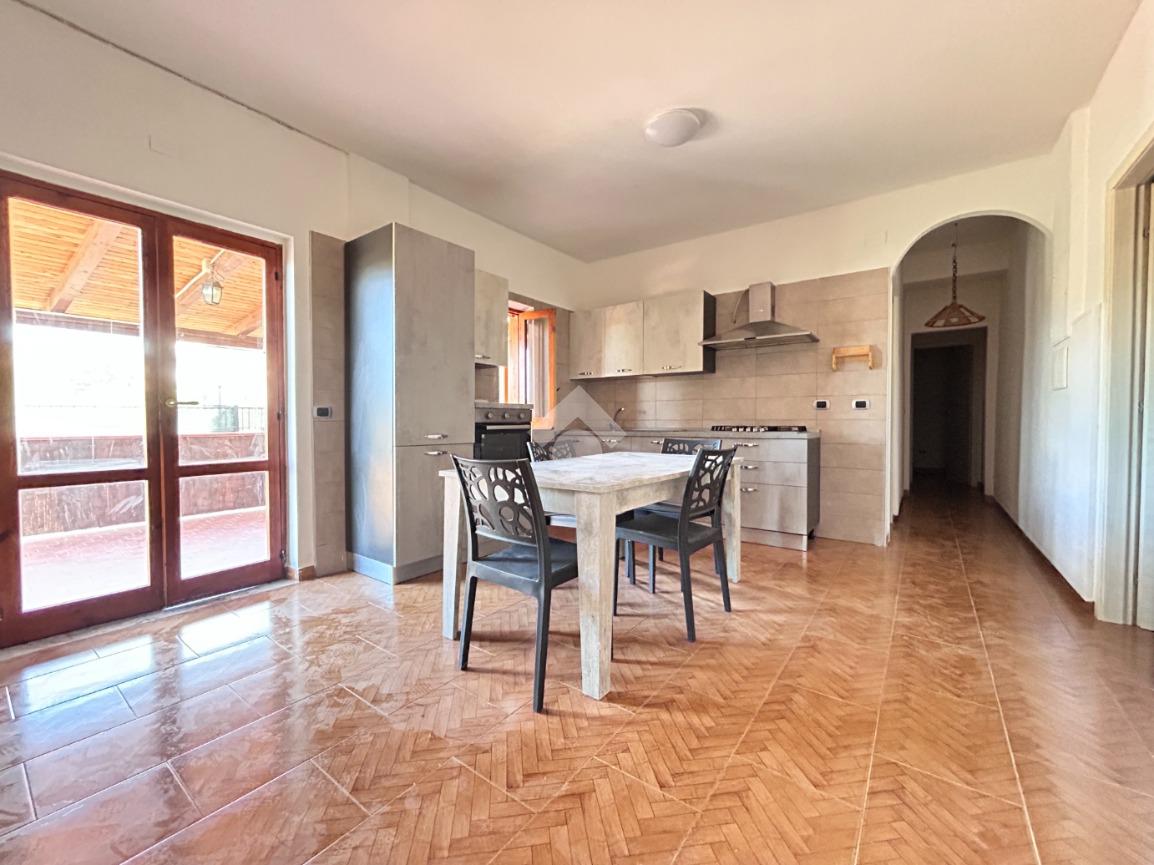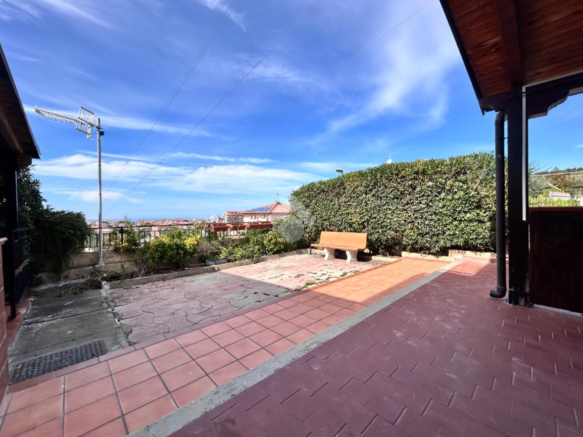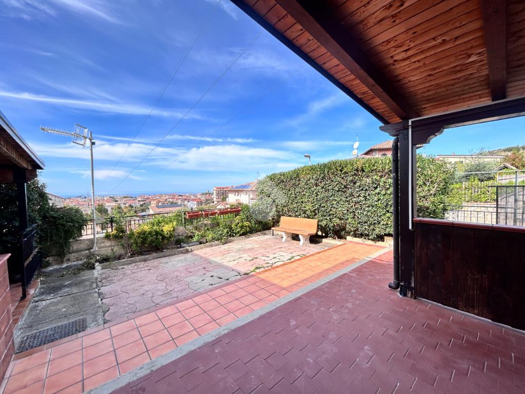 Scalea, via Sandro Pertini, appartamento al piano terra, di 86 mq interni, con ingresso indipendente composto da: corte angolare di 80 mq di proprietà esclusiva, attrezzata con doccia esterna e lavabo, con possibilità di parcheggiare l'auto all'interno; sala con angolo cottura, 3 camere e 2 bagni. Impianto GPL per l'acqua calda. Impianto elettrico nuovo. Climatizzato. Posto auto assegnato. A circa 2 km dal mare.