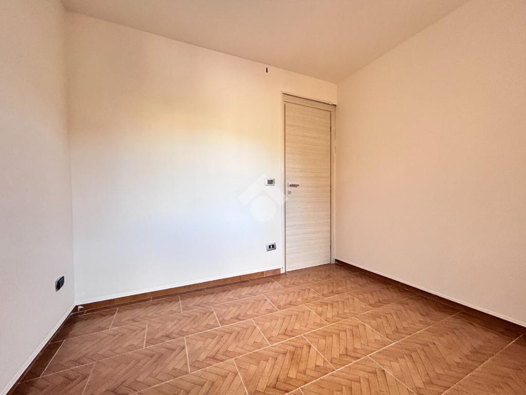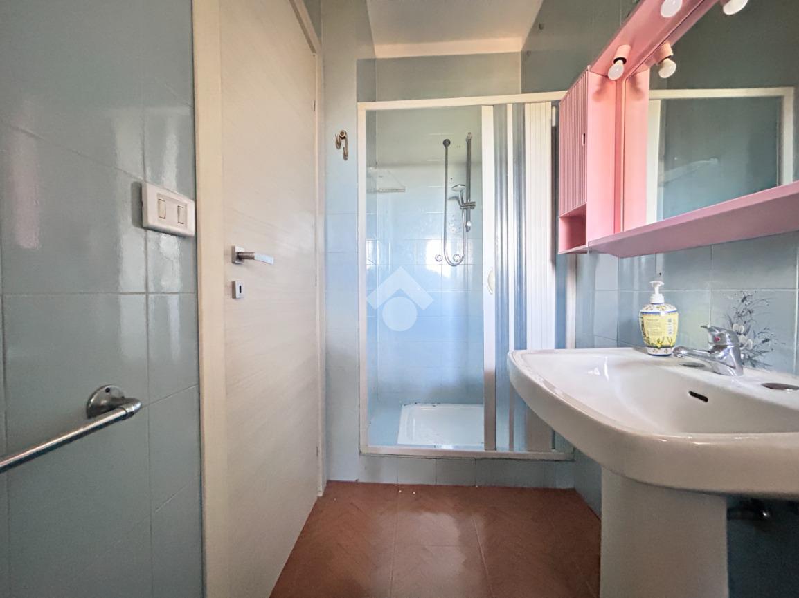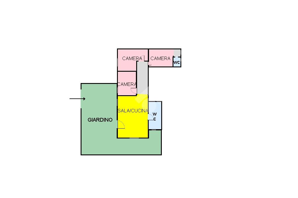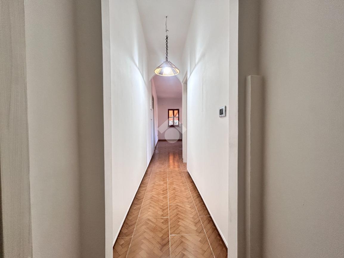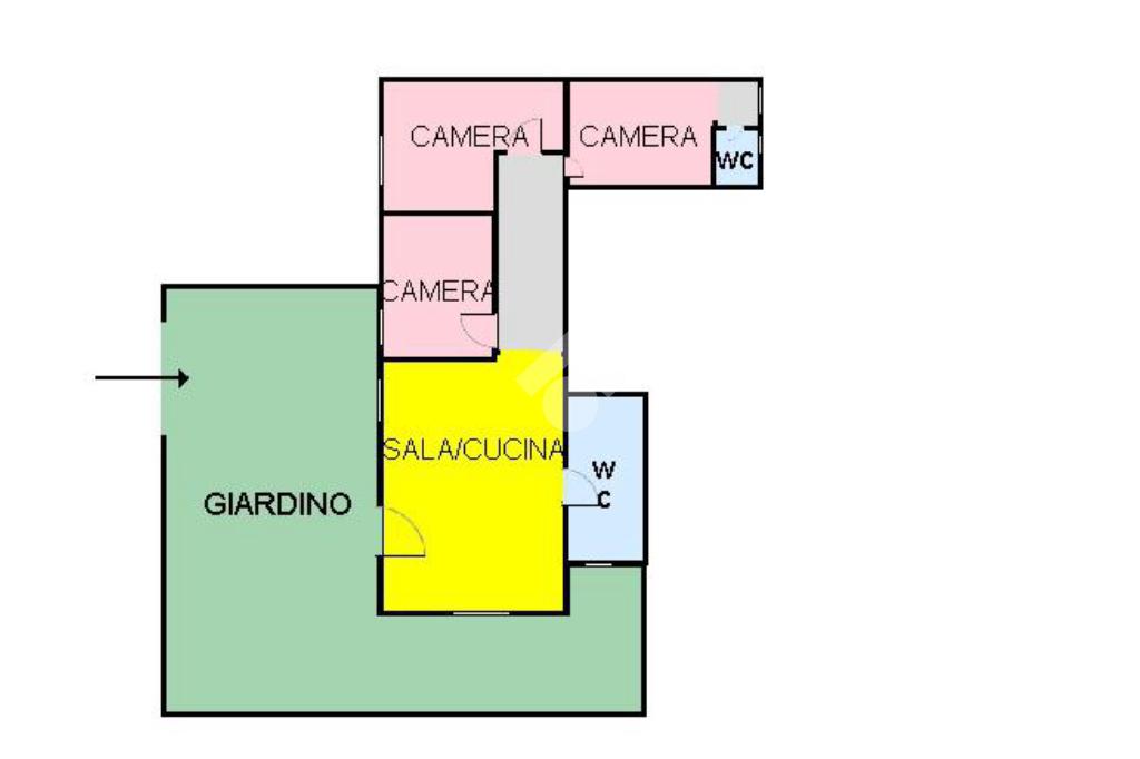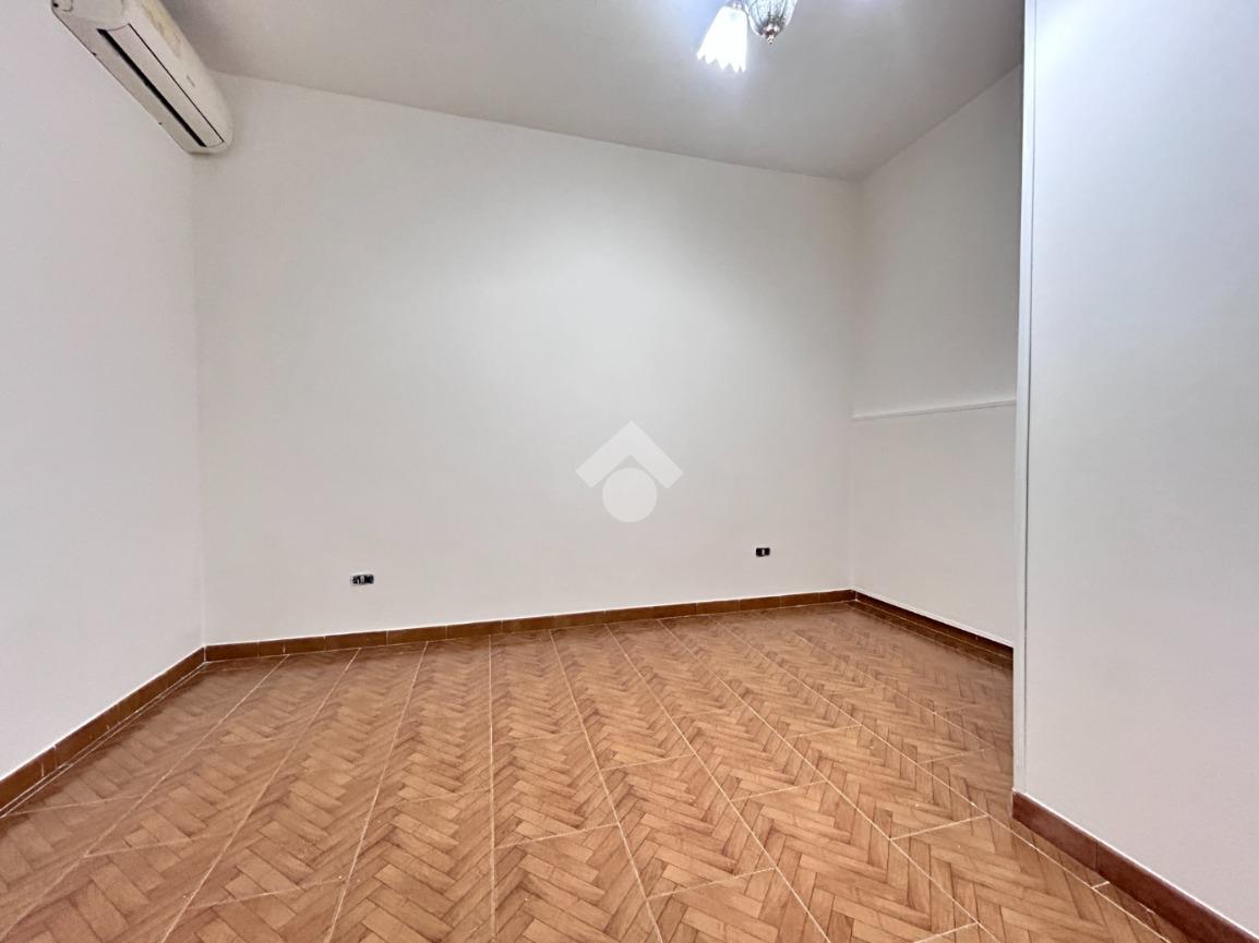 Scalea, via Sandro Pertini, appartamento al piano terra, di 86 mq interni, con ingresso indipendente composto da: corte angolare di 80 mq di proprietà esclusiva, attrezzata con doccia esterna e lavabo, con possibilità di parcheggiare l'auto all'interno; sala con angolo cottura, 3 camere e 2 bagni. Impianto GPL per l'acqua calda. Impianto elettrico nuovo. Climatizzato. Posto auto assegnato. A circa 2 km dal mare.