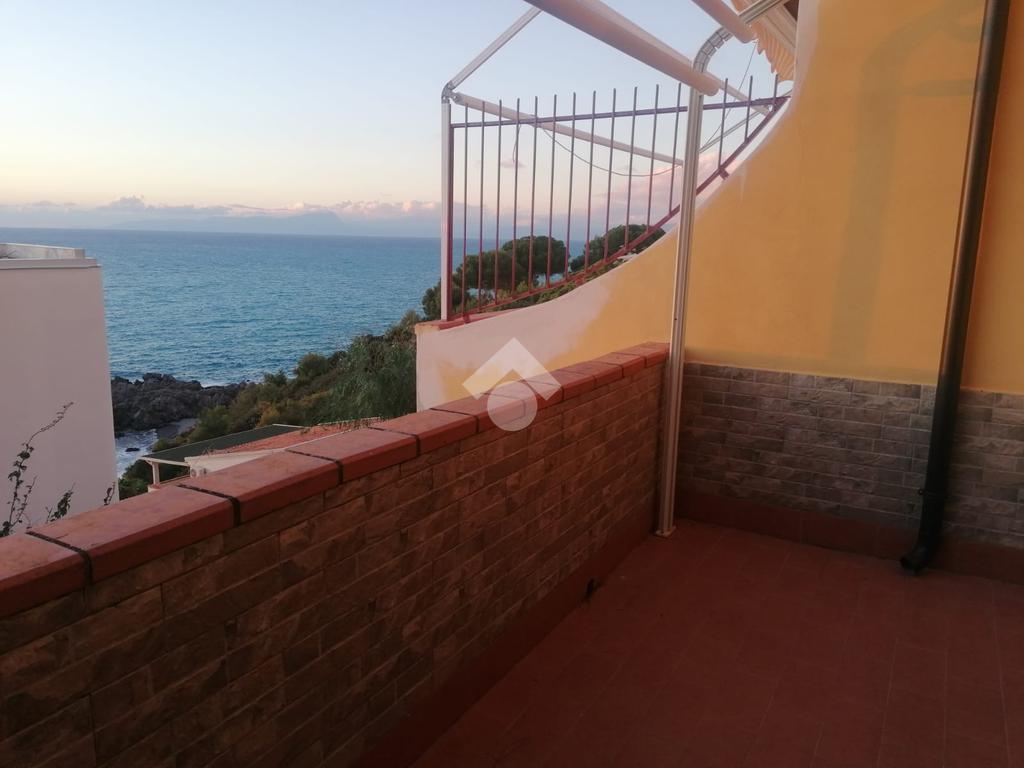 Scalea, Baia del Carpino, Condominio Cala di Luna, villa a schiera di 72 mq con circa 50 mq di corte fronteretro; al suo interno è composta al piano terra da un ingresso/cucina che apre sul soggiorno, un bagno con finestra, un portico e le due corti, una piccola lato monti ed una più spaziosa lato mare, mentre al 1° piano troviamo un disimpegno, un altro bagno con box doccia, due camere da letto comode e un terrazzo attrezzato con tenda da sole, da cui è possibile godere anche di un po' di vista mare. Lo stato dell'immobile è abitabile: la pavimentazione e gli impianti risalgono all'epoca della costruzione, mentre gli infissi esterni in legno sono stati sostituiti da quelli in alluminio color legno doppio vetro. Dotato di zanzariere. Facciate ritinteggiate di recente. L'immobile viene venduto compreso di arredamento. Le scalette che conducono alla caratteristica spiaggia della Baia del Carpino distano solo 150 m. Il parco dispone di posti auto condominiali, servizio navetta per il centro nei mesi di luglio e agosto (ogni ora dalle 8 alle 14), , campetto da calcio e parco giochi per bambini; i custodi sono presenti tutto l'anno sia di giorno che di notte.